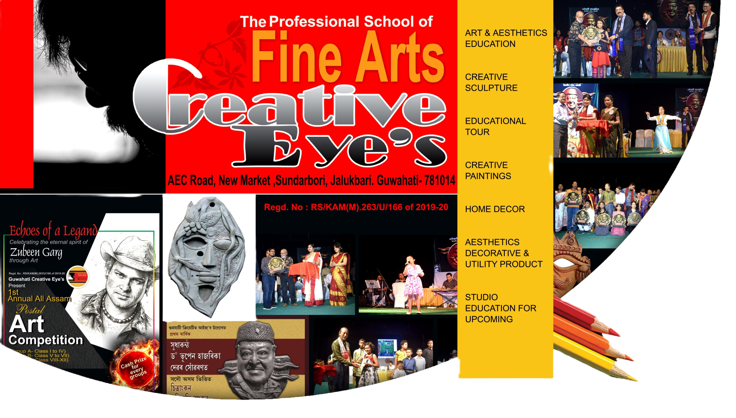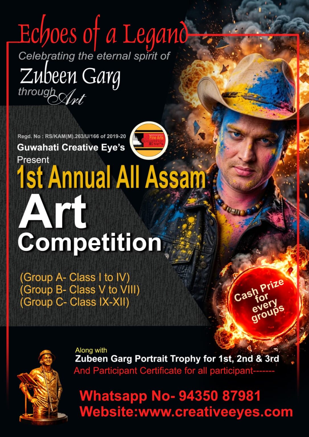Creative Eye’s Guwahati presents this competition in memory of Zubeen Garg, Assam’s beloved singer and cultural icon. Students from Class I to XII across all of Assam are invited to participate entirely through the post. No travel needed.